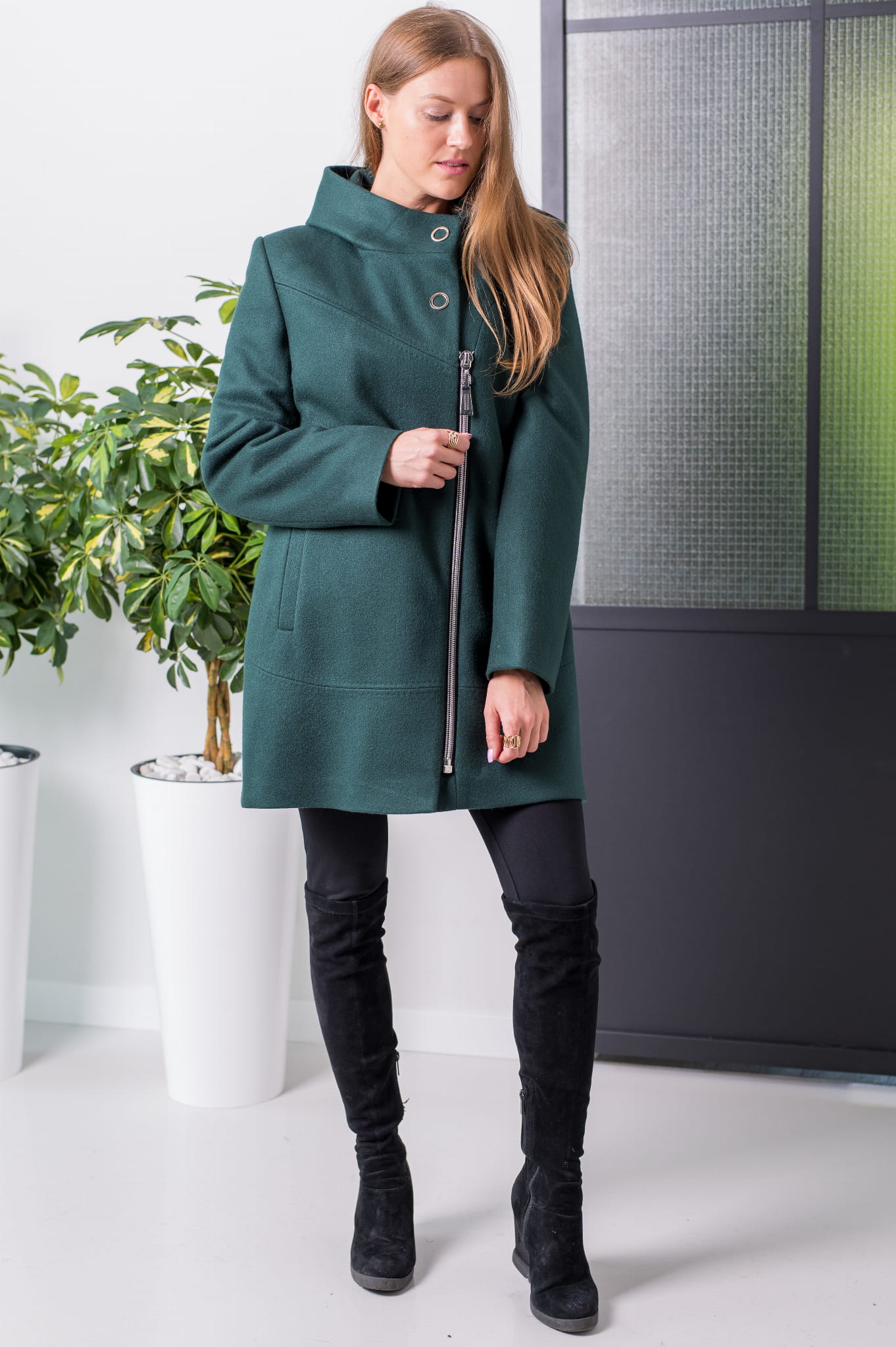 Kurtka Agata - butelkowa zieleń z kapturem i zapięciem na suwak