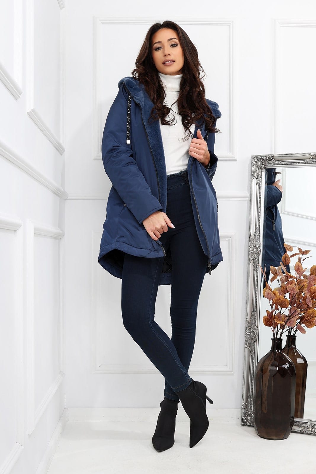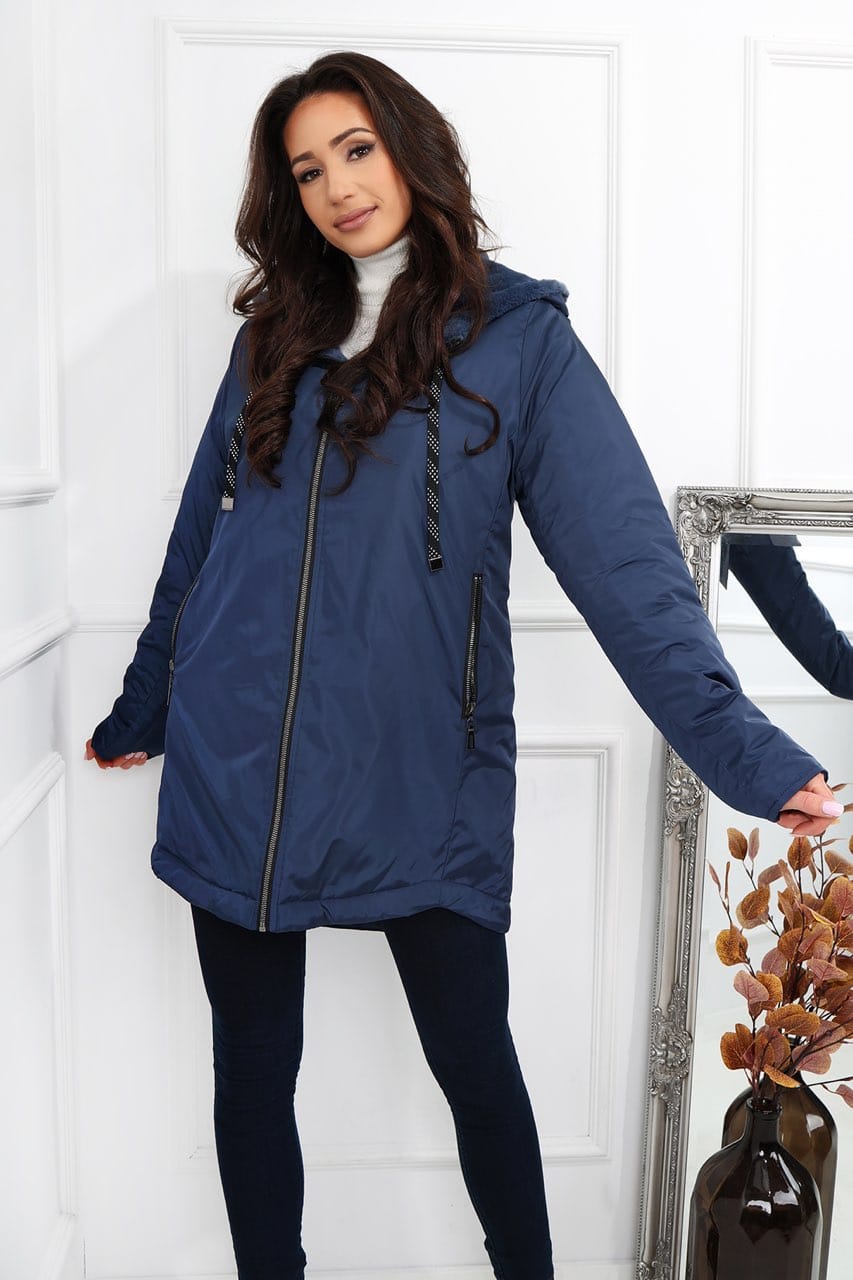 Kurtka ortalionowa Dina granatowa - zimowa z kapturem i zapinanymi kieszeniami