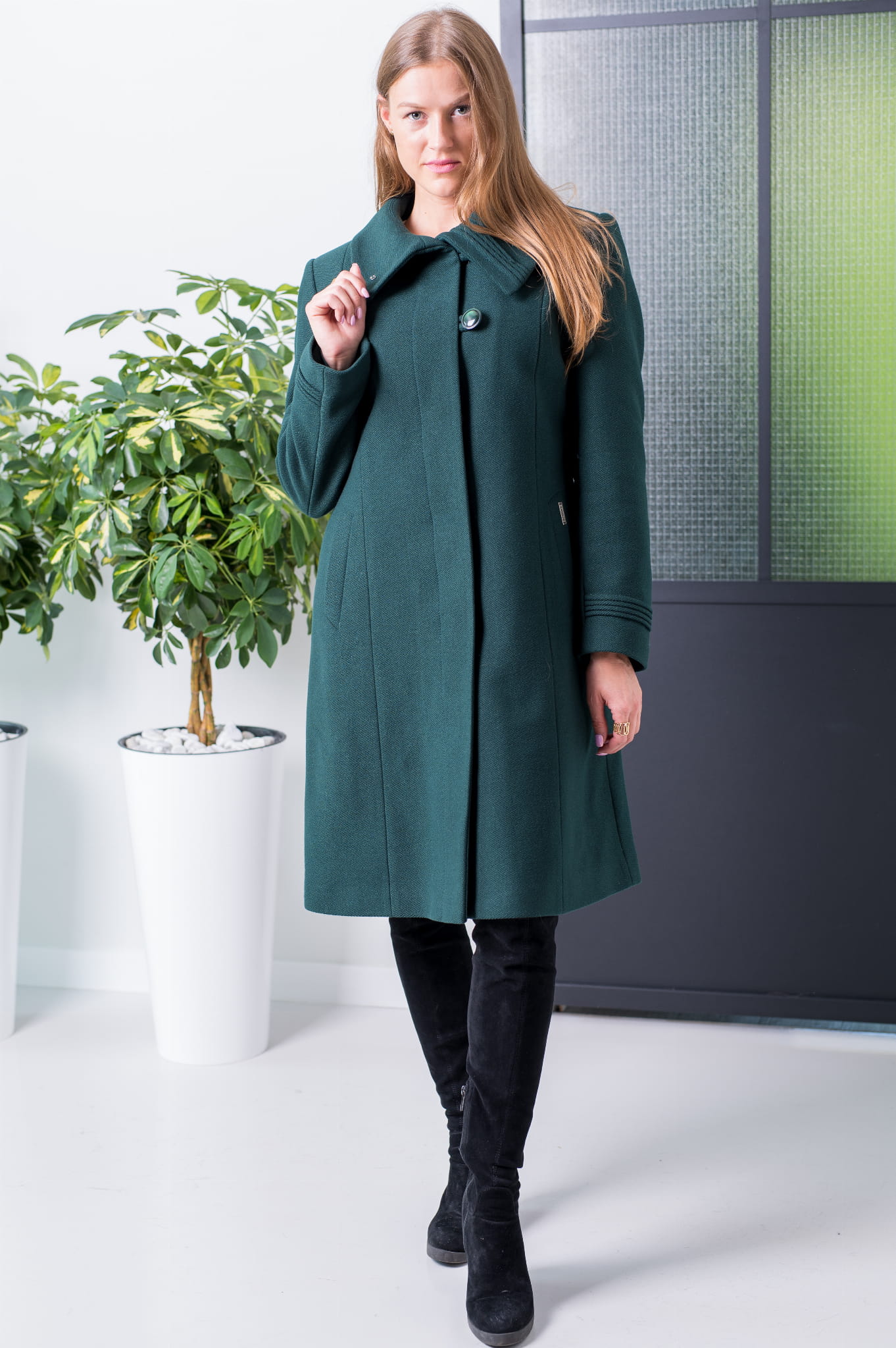 Płaszcz Natalia - butelkowa zieleń z kołnierzem